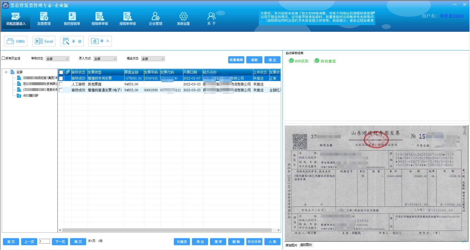 票总管是软硬件结合的扫描识别系统,通过专用的发票扫描仪对纸质发票进行快速扫描,结合OCR发票识别技术,精准提取票面信息且与国家税务总局的增值税发票查验平台做对接进行批量发票真伪查验,有效提高企业财会的工作效率,为企业提供发票识别、电子发票存档、发票审核、企业费控、线上报销等发票全生命周期管理服务,帮助企业规避发票风险、控制报销费用。